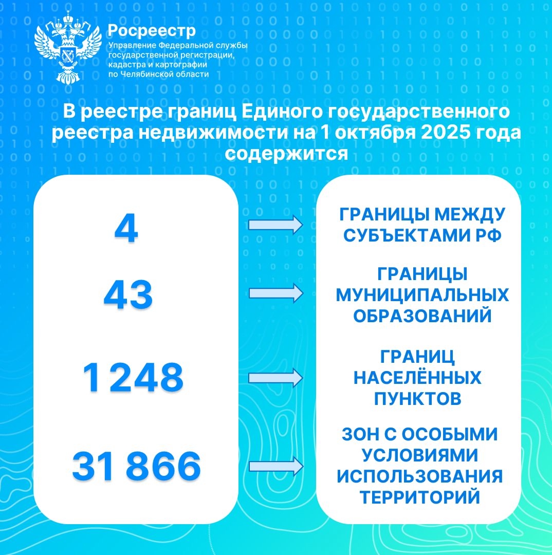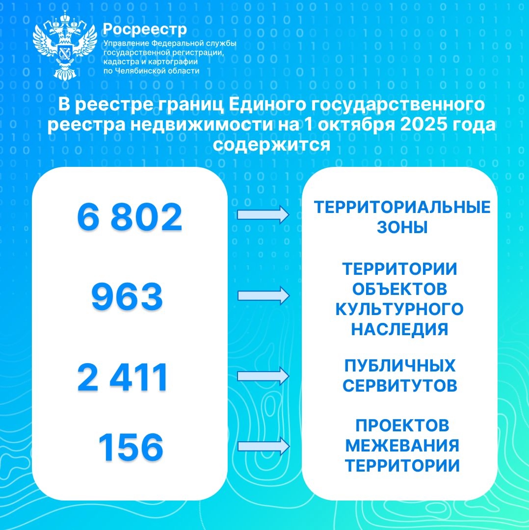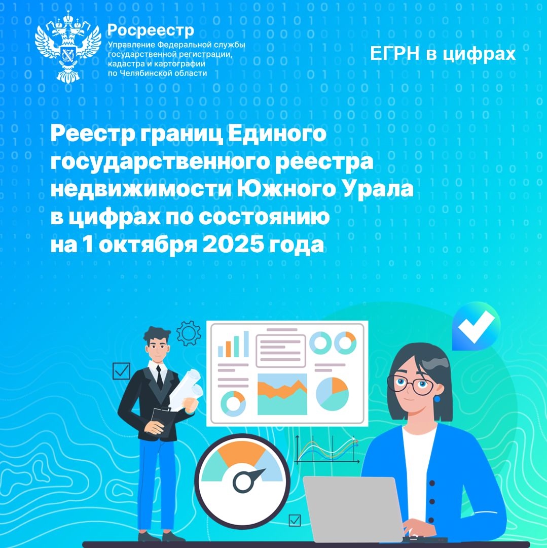 В рамках ежемесячной рубрики «ЕГРН в цифрах» представляем актуальную статистику по обновлению и пополнению сведений в реестре границ ЕГРН Челябинской области по состоянию на 1 октября 2025 года.